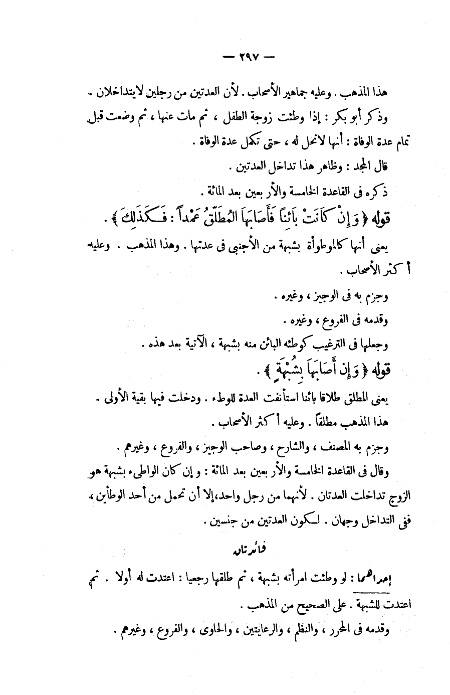 هَذَا الْمَذْهَبُ. وَعَلَيْهِ جَمَاهِيرُ الْأَصْحَابِ. لِأَنَّ الْعِدَّتَيْنِ مِنْ رَجُلَيْنِ لَا يَتَدَاخَلَانِ. وَذَكَرَ أَبُو بَكْرٍ: إذَا وُطِئَتْ زَوْجَةُ الطِّفْلِ، ثُمَّ مَاتَ عَنْهَا، ثُمَّ وَضَعَتْ قَبْلَ تَمَامِ عِدَّةِ الْوَفَاةِ: أَنَّهَا لَا تَحِلُّ لَهُ، حَتَّى تُكْمِلَ عِدَّةَ الْوَفَاةِ. قَالَ الْمَجْدُ: وَظَاهِرُ هَذَا تَدَاخُلُ الْعِدَّتَيْنِ. ذَكَرَهُ فِي الْقَاعِدَةِ الْخَامِسَةِ وَالْأَرْبَعِينَ بَعْدَ الْمِائَةِ.