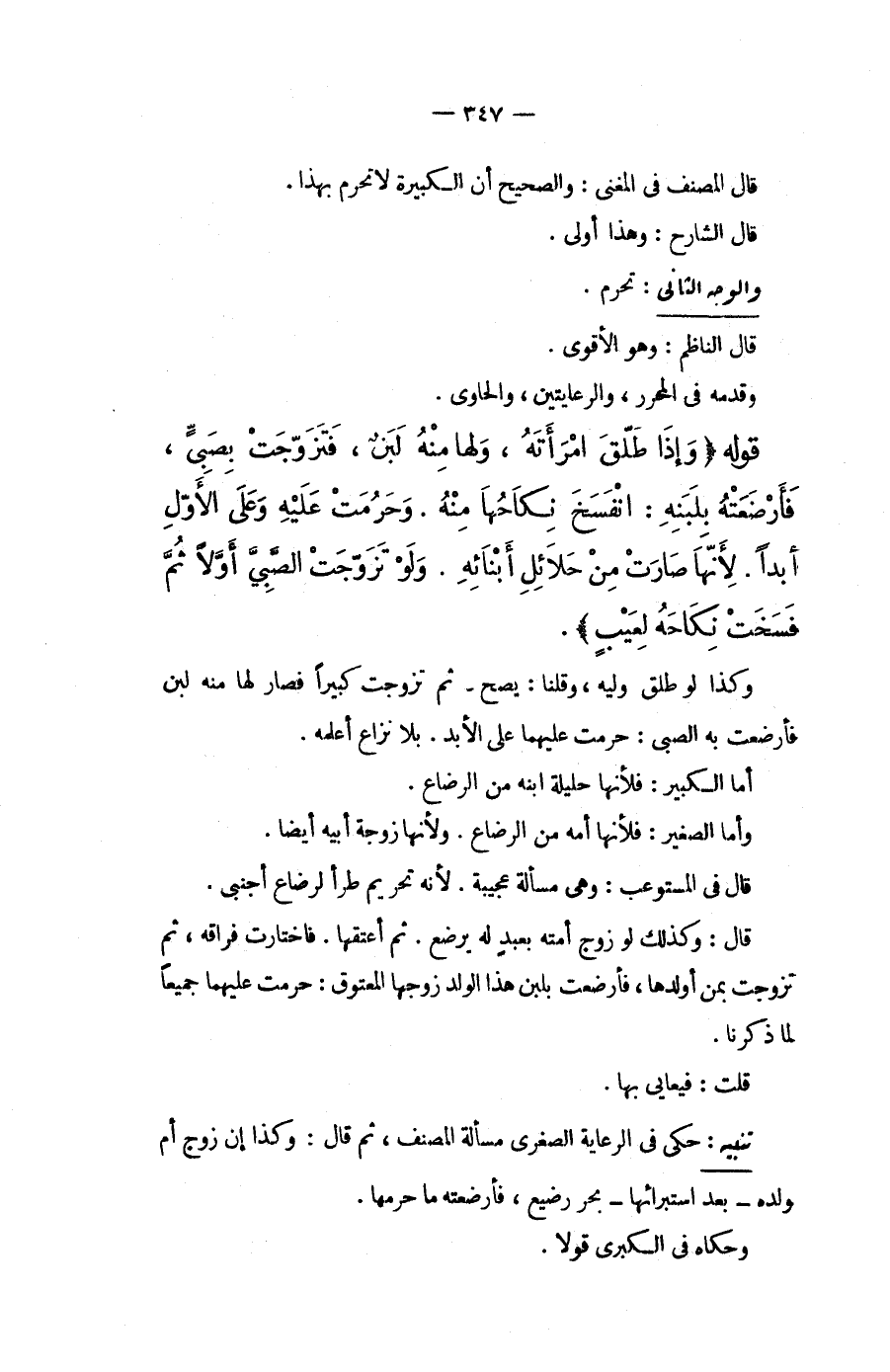 قَالَ الْمُصَنِّفُ فِي الْمُغْنِي: وَالصَّحِيحُ أَنَّ الْكَبِيرَةَ لَا تَحْرُمُ بِهَذَا. قَالَ الشَّارِحُ: وَهَذَا أَوْلَى.