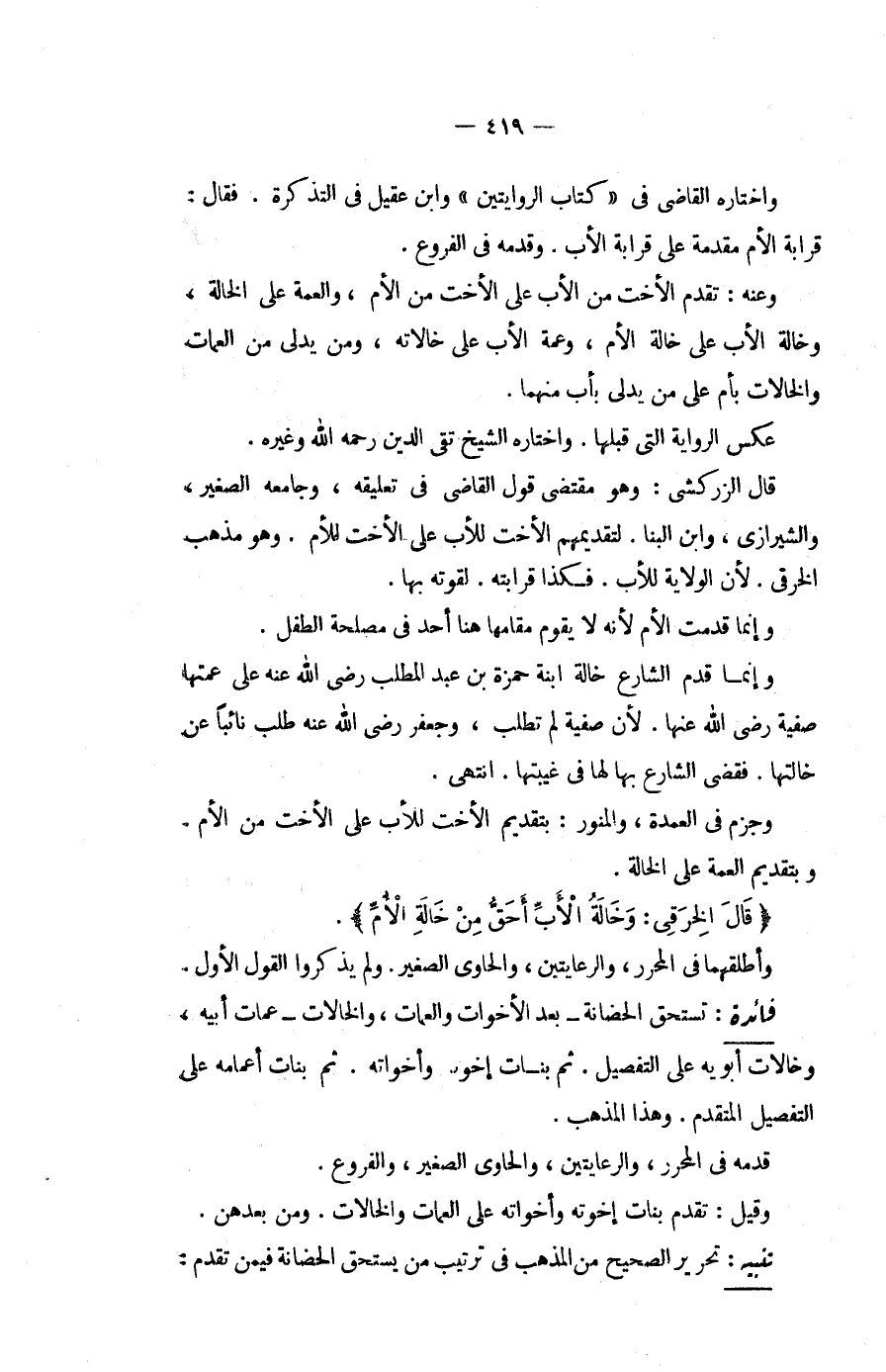 تَحْرِيرُ الصَّحِيحِ مِنْ الْمَذْهَبِ فِي تَرْتِيبِ مَنْ يَسْتَحِقُّ الْحَضَانَةَ فِيمَنْ تَقَدَّمَ: