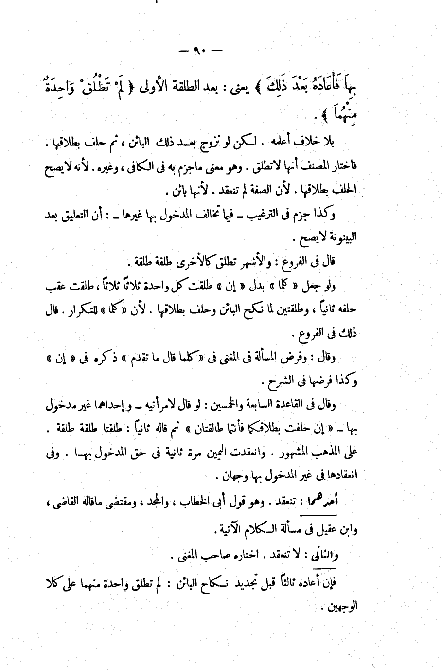 بِهَا فَأَعَادَهُ بَعْدَ ذَلِكَ) يَعْنِي: بَعْدَ الطَّلْقَةِ الْأُولَى (لَمْ تَطْلُقْ وَاحِدَةٌ مِنْهُمَا) ، بِلَا خِلَافٍ أَعْلَمُهُ، لَكِنْ لَوْ تَزَوَّجَ بَعْدَ ذَلِكَ الْبَائِنَ، ثُمَّ حَلَفَ بِطَلَاقِهَا، فَاخْتَارَ الْمُصَنِّفُ أَنَّهَا لَا تَطْلُقُ، وَهُوَ مَعْنَى مَا جَزَمَ بِهِ فِي الْكَافِي، وَغَيْرِهِ، لِأَنَّهُ لَا يَصِحُّ الْحَلِفُ بِطَلَاقِهَا؛ لِأَنَّ الصِّفَةَ لَمْ تَنْعَقِدْ؛ لِأَنَّهَا بَائِنٌ، وَكَذَا جَزَمَ فِي التَّرْغِيبِ فِيمَا تُخَالِفُ الْمَدْخُولُ بِهَا غَيْرَهَا: أَنَّ التَّعْلِيقَ بَعْدَ الْبَيْنُونَةِ لَا يَصِحُّ، قَالَ فِي الْفُرُوعِ: وَالْأَشْهَرُ تَطْلُقُ كَالْأُخْرَى طَلْقَةً طَلْقَةً، وَلَوْ جَعَلَ " كُلَّمَا " بَدَلَ " إنْ " طَلُقَتْ كُلُّ وَاحِدَةٍ ثَلَاثًا ثَلَاثًا، طَلُقَتْ عَقِبَ حَلِفِهِ ثَانِيًا، وَطَلْقَتَيْنِ لَمَّا نَكَحَ الْبَائِنَ وَحَلَفَ بِطَلَاقِهَا؛ لِأَنَّ " كُلَّمَا " لِلتَّكْرَارِ، قَالَ ذَلِكَ فِي الْفُرُوعِ، وَقَالَ: وَفَرَضَ الْمَسْأَلَةَ فِي الْمُغْنِي فِي " كُلَّمَا قَالَ مَا تَقَدَّمَ " ذَكَرَهُ فِي " إنْ " وَكَذَا فَرَضَهَا فِي الشَّرْحِ، وَقَالَ فِي الْقَاعِدَةِ السَّابِعَةِ وَالْخَمْسِينَ: لَوْ قَالَ لِامْرَأَتَيْهِ وَإِحْدَاهُمَا غَيْرُ مَدْخُولٍ بِهَا " إنْ حَلَفْت بِطَلَاقِكُمَا فَأَنْتُمَا طَالِقَتَانِ " ثُمَّ قَالَهُ ثَانِيًا: طَلُقَتَا طَلْقَةً طَلْقَةً، عَلَى الْمَذْهَبِ الْمَشْهُورِ، وَانْعَقَدَتْ الْيَمِينُ مَرَّةً ثَانِيَةً فِي حَقِّ الْمَدْخُولِ بِهَا، وَفِي انْعِقَادِهَا فِي غَيْرِ الْمَدْخُولِ بِهَا وَجْهَانِ. أَحَدُهُمَا: تَنْعَقِدُ، وَهُوَ قَوْلُ أَبِي الْخَطَّابِ، وَالْمَجْدِ، وَمُقْتَضَى مَا قَالَهُ الْقَاضِي، وَابْنُ عَقِيلٍ فِي مَسْأَلَةِ الْكَلَامِ الْآتِيَةِ، وَالثَّانِي: لَا تَنْعَقِدُ، اخْتَارَهُ صَاحِبُ الْمُغْنِي، فَإِنْ أَعَادَهُ ثَالِثًا قَبْلَ تَجْدِيدِ نِكَاحِ الْبَائِنِ: لَمْ تَطْلُقْ وَاحِدَةٌ مِنْهُمَا عَلَى كِلَا الْوَجْهَيْنِ،