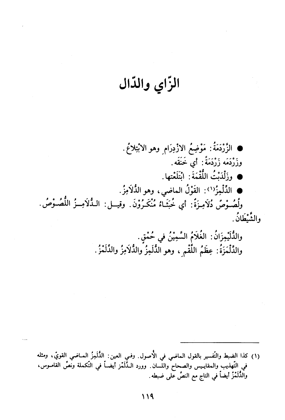 الزَّرْدَمَةُ مَوْضِعُ الازْدِرَام وهو الابْتِلاع . وزَرْدَمَه زَرْدَمَة : أي خَنَقَه . وزَلْدَبْتُ اللُقْمَةَ ابْتَلَعْتها . الدِّلْمِزُ القَوْلُ الماضي ، وهو الدلامِزُ . ولُصُوْصٌ دُلامِزَةٌ أي خُبَثَاءُ مُنْكَرُوْنَ . وقيل الدُّلامِزُ اللُصُوْصُ . والشيْطَانُ . والدُّلَيْمِزَانُ : الغُلامُ السمِيْنُ في حُمْقٍ . والدَّلْمَزَةُ : عِظَمُ اللقْمِ ، وهو الدُّلَمِزُ والدُلَامِزُ والدِّلَمْزُ .