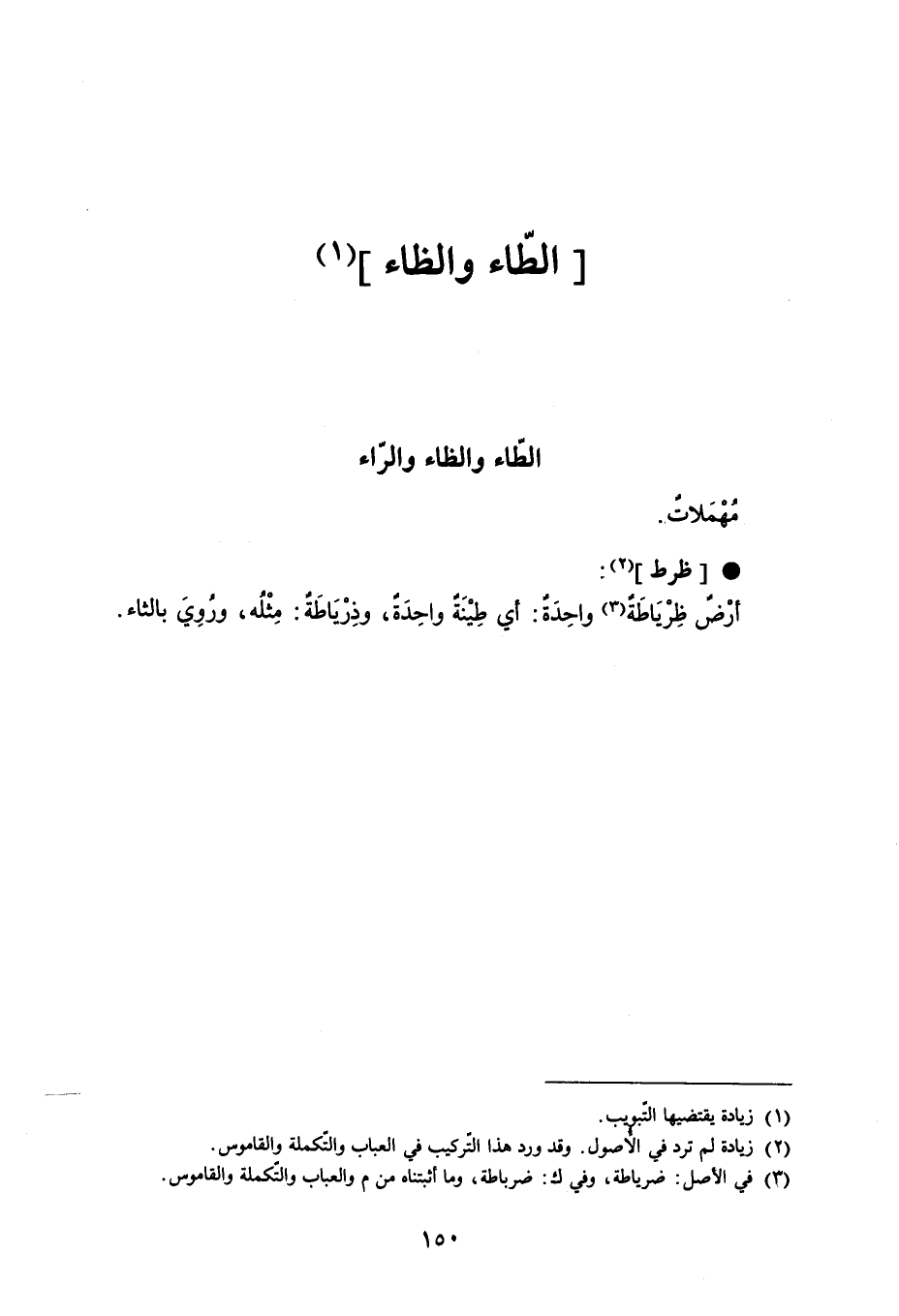 مُهْمَلاتٌ . ظرط أرْض ظِرْيَاطَةٌ واحِدَةٌ : أي طِيْنَةٌ واحِدَةٌ ، وذِرْيَاطَةٌ : مِثْلُه ، ورُوِيَ بالثاء .