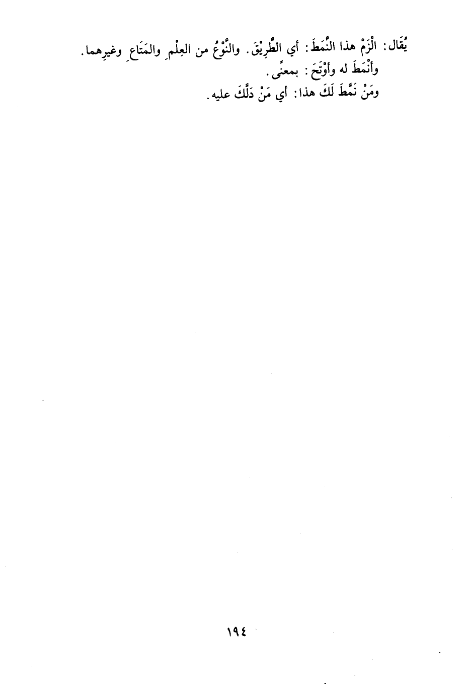 يقال : الْزَمْ هذا النَمَطَ : أي الطرِيْقَ . والنَّوْعُ من العِلْمِ والمتاع وغيرهما وأنْمَطَ له وأوْتَحَ : بمعنى . ومَنْ نَمَطَ لَكَ هذا : أي مَنْ دَلَّكَ عليه .