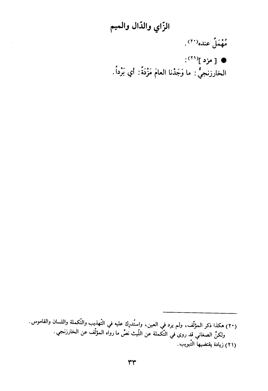 مهمل عنده مزد الخارزنجي : ما وجدنا العام مزدة : أي برداً .