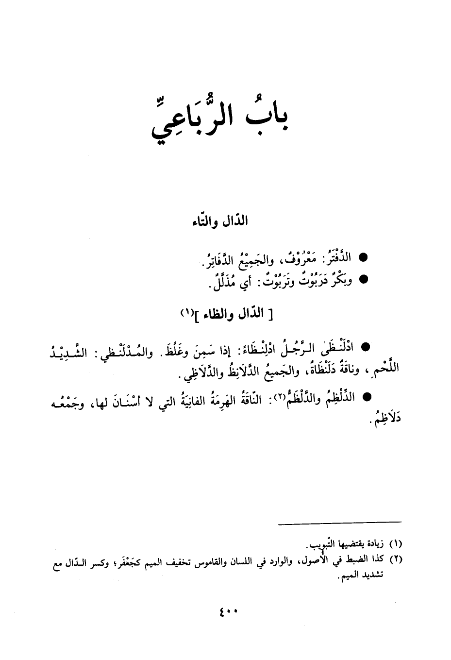 الدَّفْتَرُ مَعْروْفٌ ، والجَمِيْعُ الدَّفَاتِرُ . وبَكْر دَرَبُوت وتَرَبُوْتٌ أي مُذَلَّلٌ .