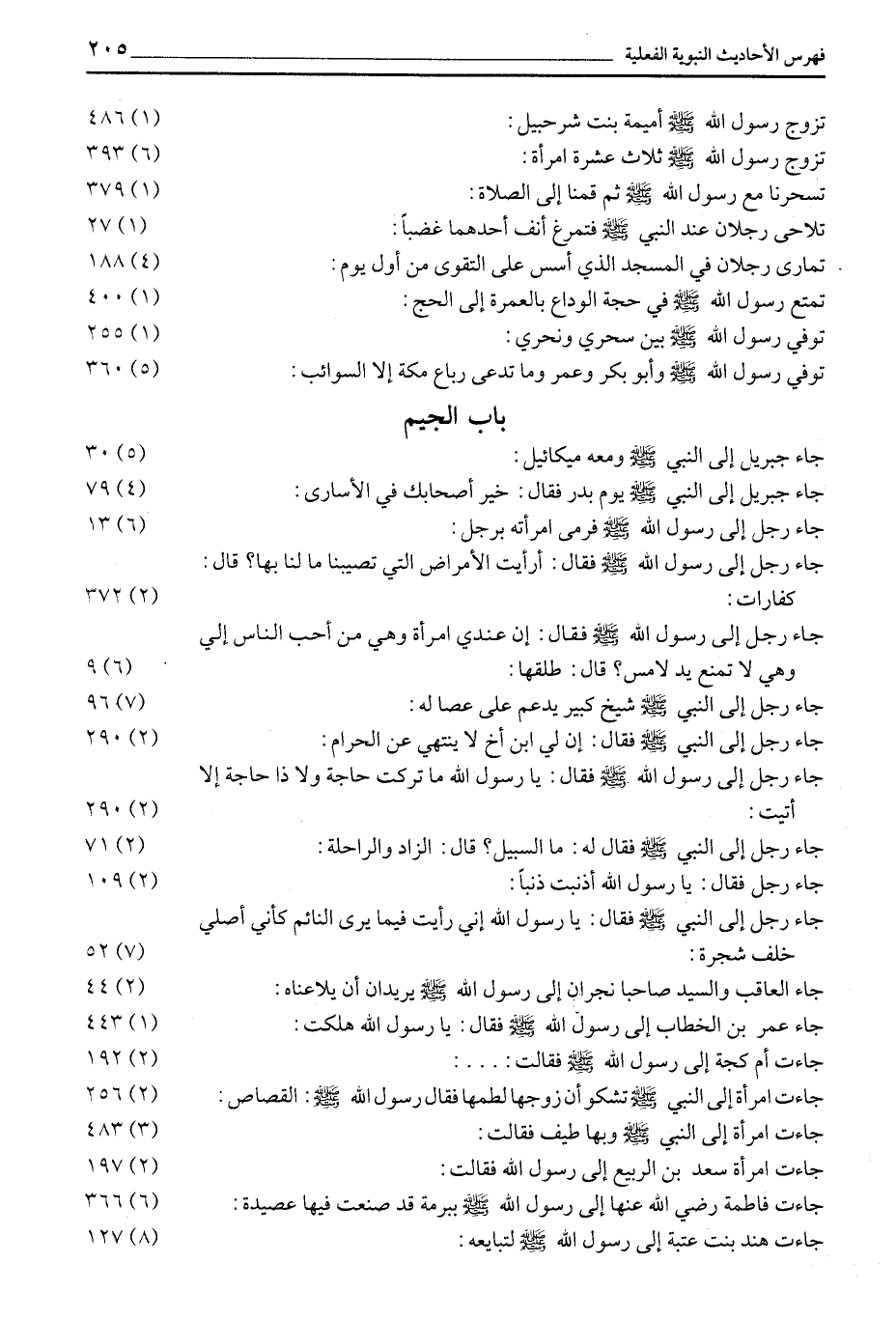 جَاءَ جِبْرِيلُ إِلَى النَّبِيِّ صَلَّى اللَّهُ عَلَيْهِ وسلّم ومعه ميكائيل: (5) 30 جَاءَ جِبْرِيلُ إِلَى النَّبِيِّ صَلَّى اللَّهُ عَلَيْهِ وَسَلَّمَ يَوْمَ بَدْرٍ فَقَالَ: خَيِّرْ أَصْحَابَكَ فِي الأسارى: (4) 79 جَاءَ رَجُلٌ إِلَى رَسُولِ اللَّهِ صَلَّى اللَّهُ عليه وسلّم فرمى امرأته برجل: (6) 13 جَاءَ رَجُلٌ إِلَى رَسُولِ اللَّهِ صَلَّى اللَّهُ عليه وسلّم فقال: أرأيت الْأَمْرَاضَ الَّتِي تُصِيبُنَا مَا لَنَا بِهَا؟ قَالَ: