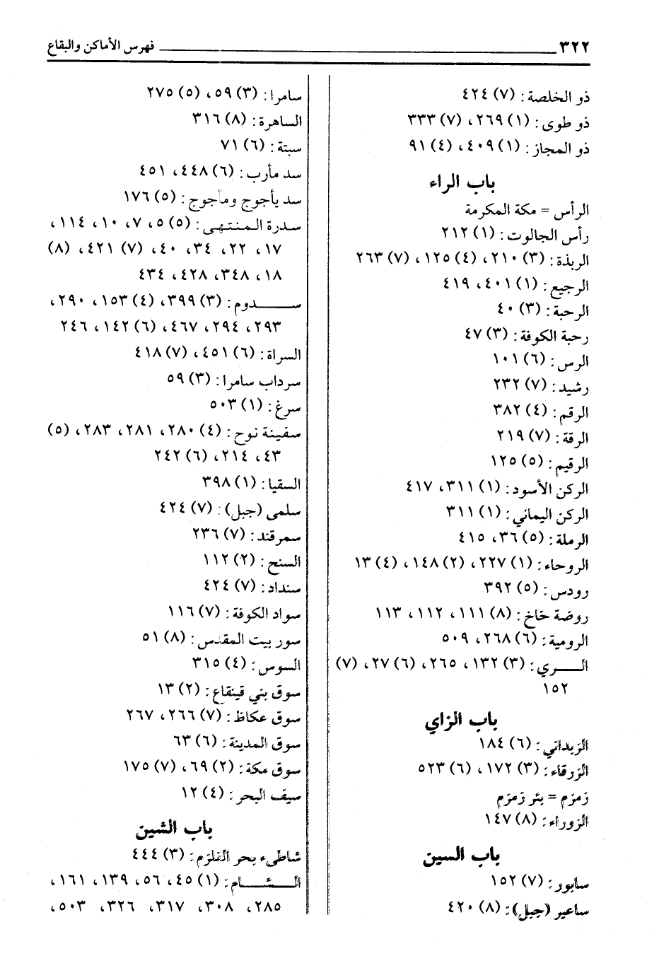 الرأس مكة المكرمة رأس الجالوت: (1) 212 الربذة: (3) 210، (4) 125، (7) 263 الرجيع: (1) 401، 419 الرحبة: (3) 40 رحبة الكوفة: (3) 47 الرس: (6) 101 رشيد: (7) 232 الرقم: (4) 382 الرقة: (7) 219 الرقيم: (5) 125 الركن الأسود: (1) 311، 417 الركن اليماني: (1) 311 الرملة: (5) 36، 415 الروحاء: (1) 227، (2) 148، (4) 13 رودس: (5) 392 روضة خاخ: (8) 111، 112، 113 الرومية: (6) 268، 509 الري: (3) 132، 265، (6) 27، (7) 152