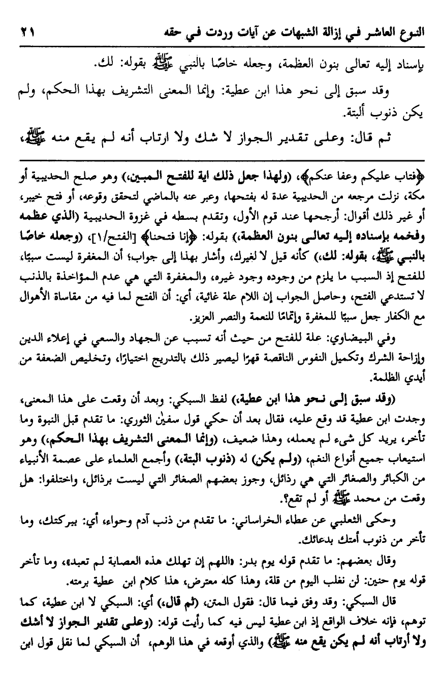 قال السبكي: وقد وفق فيما قال: فقول المتن، "ثم قال" أي: السبكي لا ابن عطية، كما توهم، فإنه خلاف الواقع إذ ابن عطية ليس فيه كما رأيت قوله: "وعلى تقدير الجواز لا أشك ولا أرتاب أنه لم يقع منه صلى الله عليه وسلم" والذي أوقعه في هذا الوهم، أن السبكي لما نقل قول ابن