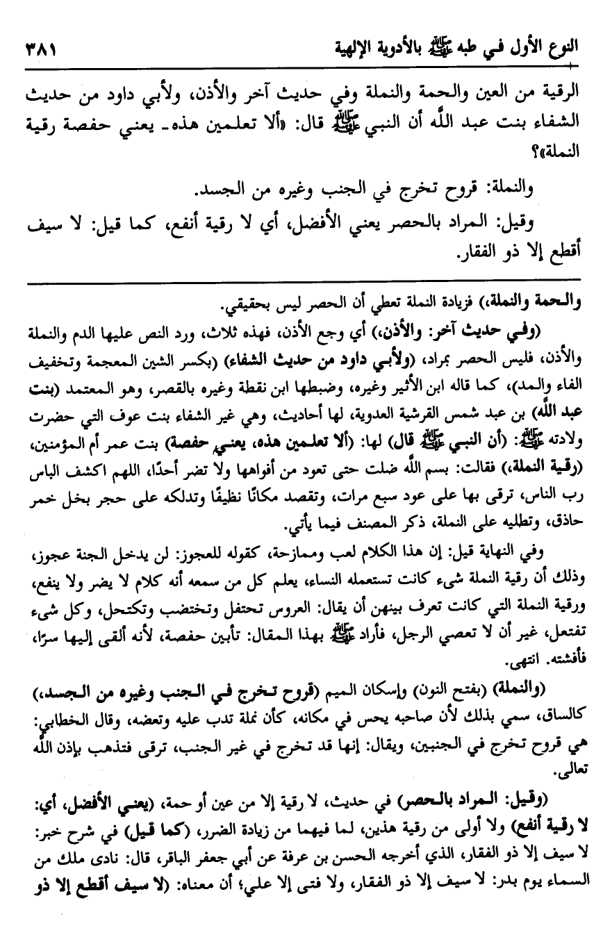 وقيل: المراد بالحصر يعني الأفضل، أي لا رقية أنفع، كما قيل: لا سيف أقطع إلا ذو الفقار.