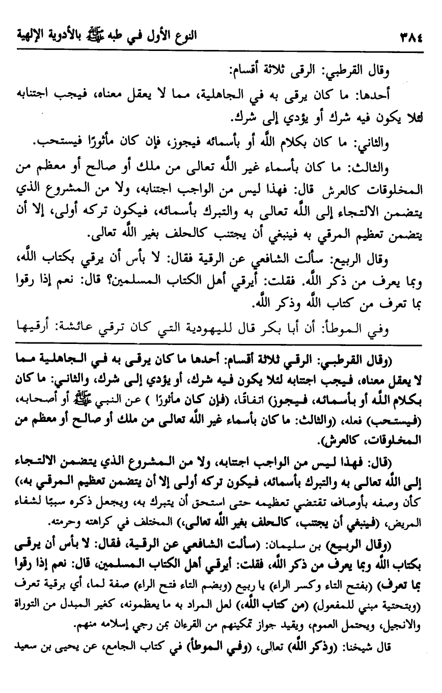 وقال القرطبي: الرقى ثلاثة أقسام: