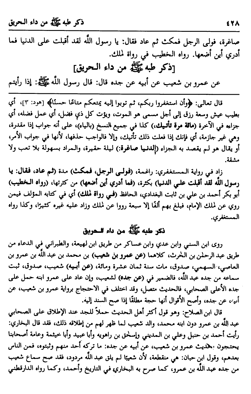 ذكر طبه صلى الله عليه وسلم من داء الحريق: