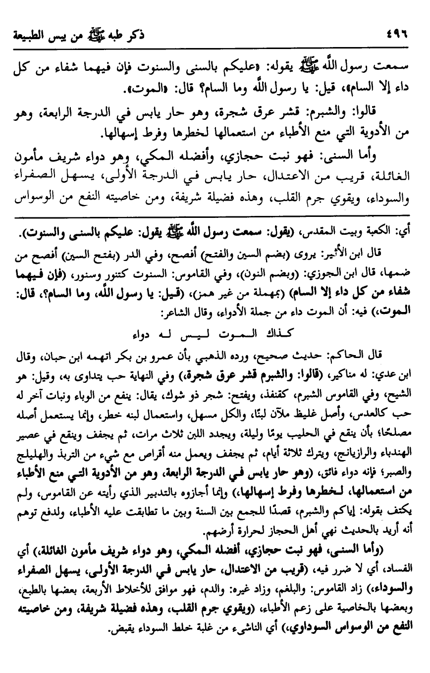 قال الحاكم: حديث صحيح، ورده الذهبي بأن عمرو بن بكر اتهمه ابن حبان، وقال ابن عدي: له مناكير، "قالوا: والشبرم قشر عرق شجرة" وفي النهاية حب يتداوى به، وقيل: هو الشيح، وفي القاموس الشبرم، كقنفذ، ويفتح: شجر ذو شوك، يقال: ينفع من الوباء ونبات آخر له حب كالعدس، وأصل غليظ ملآن لبنًا، والكل مسهل، واستعمال لبنه خطر، وإنما يستعمل أصله مصلحًا؛ بأن ينقع في الحليب يومًا وليلة، ويجدد اللين ثلاث مرات، ثم يجفف وينقع في عصير الهندباء والرازيانج، ويترك ثلاثة أيام، ثم يجفف ويعمل منه أقراص مع شيء من التربذ والهليلج والصبر؛ فإنه دواء فائق، "وهو حار يابس في الدرجة الرابعة، وهو من الأدوية التي منع الأطباء من استعمالها، لخطرها وفرط إسهالها" وإنما أجازوه بالتدبير الذي رأيته عن القاموس، ولم يكتف بقوله: إياكم والشبرم، قصدًا للجمع بين السنة وبين ما تطابقت عليه الأطباء، ولدفع توهم أنه أريد بالحديث نهي أهل الحجاز لحرارة أرضهم.