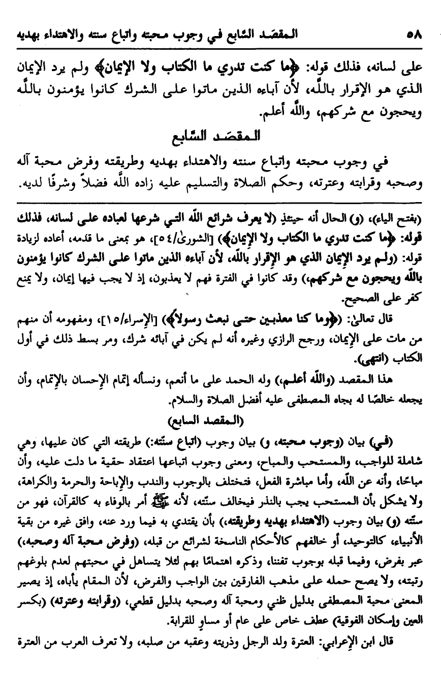المقصد السابع: في وجوب محبته واتباع سنته والاهتداء بهديه