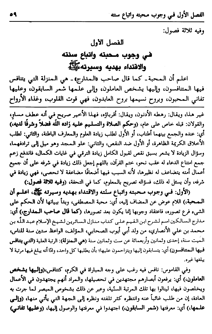 الفصل الأول: في وجوب محبته واتباع سنته والاقتداء بهديه وسيرته صلى الله عليه وسلم