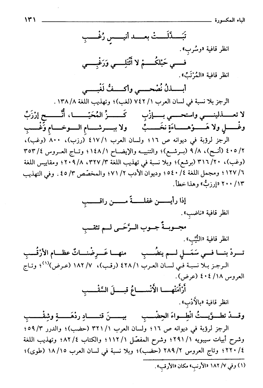 الرجز لرؤبة في ديوانه ص 16؛ ولسان العرب 1/ 417 (رزب)، 800 (وغب)، 2/ 405 (أنسح)، 8/ 9 (برشع)؛ وبلا نسبة في تهذيب اللغة 6/ 127؛ ومجمل اللغة 4/ 540؛ وديوان الأدب 2/ 71؛ والمخصص 3/ 45. وفي التهذيب 13/ 200 «إرزبُّ» وهذا خطأ.