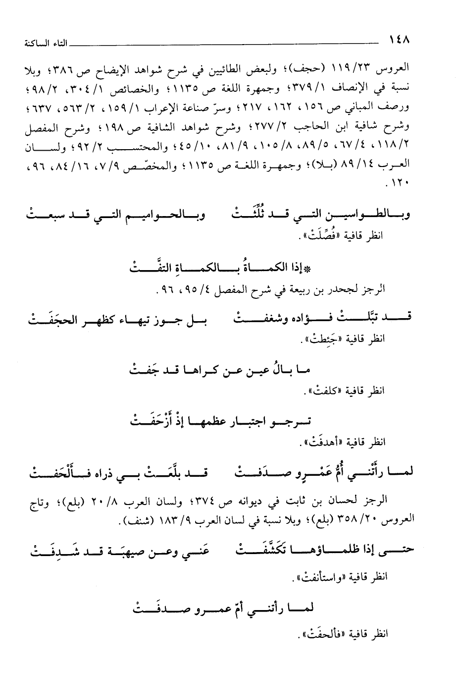 العروس 23/ 119 (حجف)؛ ولبعض الطائيين في شرح شواهد الإيضاح ص 386؛ وبلا نسبة في الإنصاف 1/ 379؛ وجمهرة اللغة ص 1135؛ والخصائص 1/ 304، 2/ 98؛ ورصف المباني ص 156، 162، 217؛ وسر صنةاعة الإعراب 1/ 159، 2/ 563، 637؛ وشرح شافية ابن الحاجب 2/ 277؛ وشرح شواهد الشافية ص 198؛ وشرح المفصل 2/ 118، 4/ 67، 5/ 89، 8/ 105، 9/ 81، 10/ 45؛ والمحتسب 2/ 92؛ ولسان العرب 14/ 89 (بلا)؛ وجمهرة اللغة ص 1135؛ والمخصص 9/ 7، 16/ 84، 96، 120.
