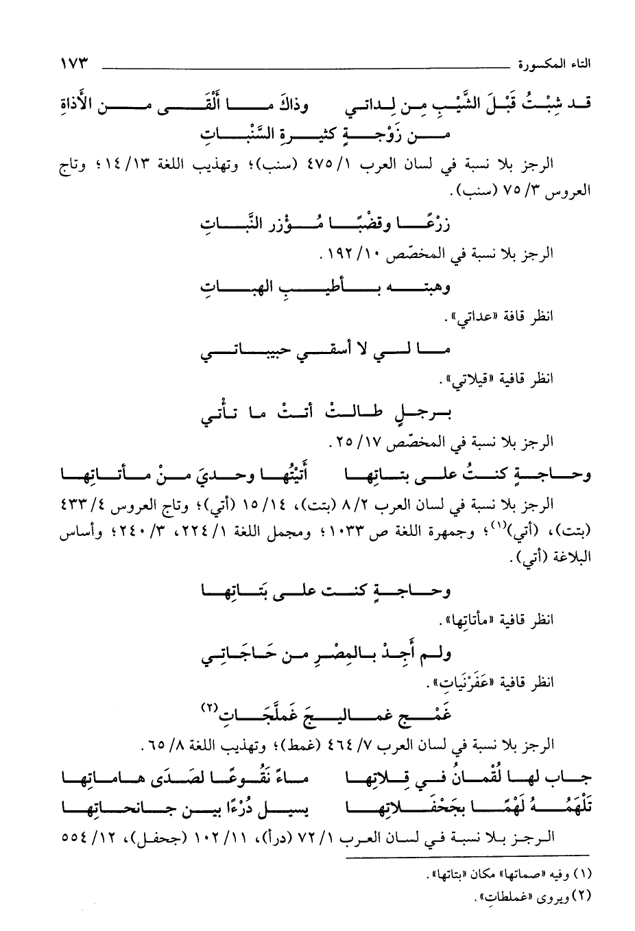 الرجز بلا نسبة في لسان العرب 2/ 8 (بتت)، 14/ 15 (أتي)؛ وتاج العروس 4/ 433 (بتت)، (أتي) (¬1)؛ وجمهرة اللغة ص 1033؛ ومجمل اللغة 1/ 224، 3/ 240؛ وأساس البلاغة (أتي).