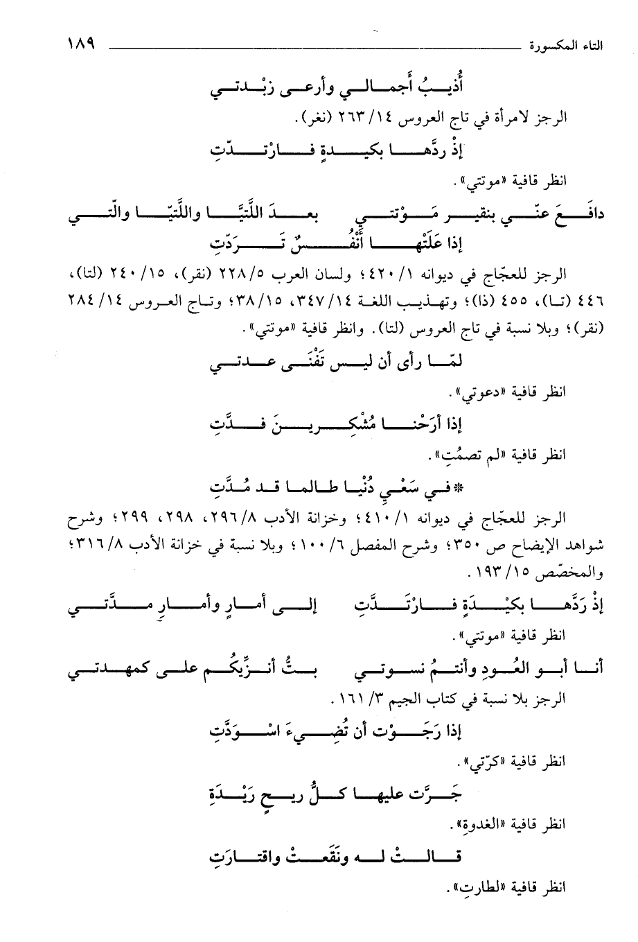 الرجز للعجاج في ديوانه 1/ 420؛ ولسان العرب 5/ 228 (نقر)، 15/ 240 (لتا)، 446 (تا)، 455 (ذا)؛ وتهذيب اللغة 14/ 347، 15/ 38؛ وتاج العروس 14/ 284 (نقر)؛ وبلا نسبة في تاج العروس (لتا). وانظر قافية «موتتي».