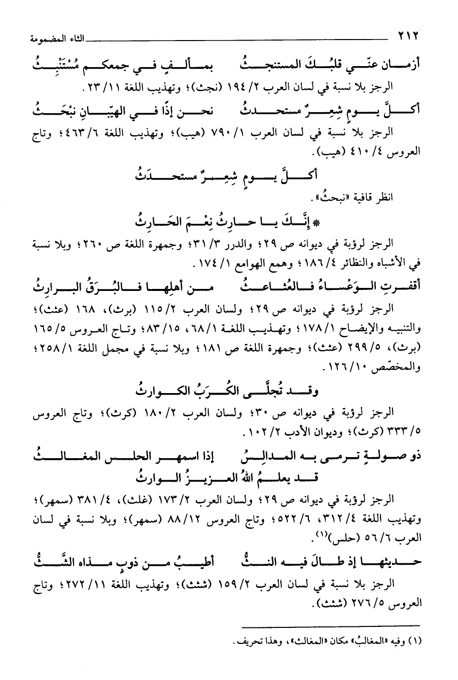 الرجز لرؤبة في ديوانه ص 29؛ ولسان العرب 2/ 115 (برث)، 168 (عثث)؛ والتنبيه والإيضاح 1/ 178؛ وتهذيب اللغة 1/ 68، 15/ 83؛ وتاج العروس 5/ 165 (برث)، 5/ 299 (عثث)؛ وجمهرة اللغة ص 181؛ وبلا نسبة في مجمل اللغة 1/ 258؛ والمخصص 10/ 126.