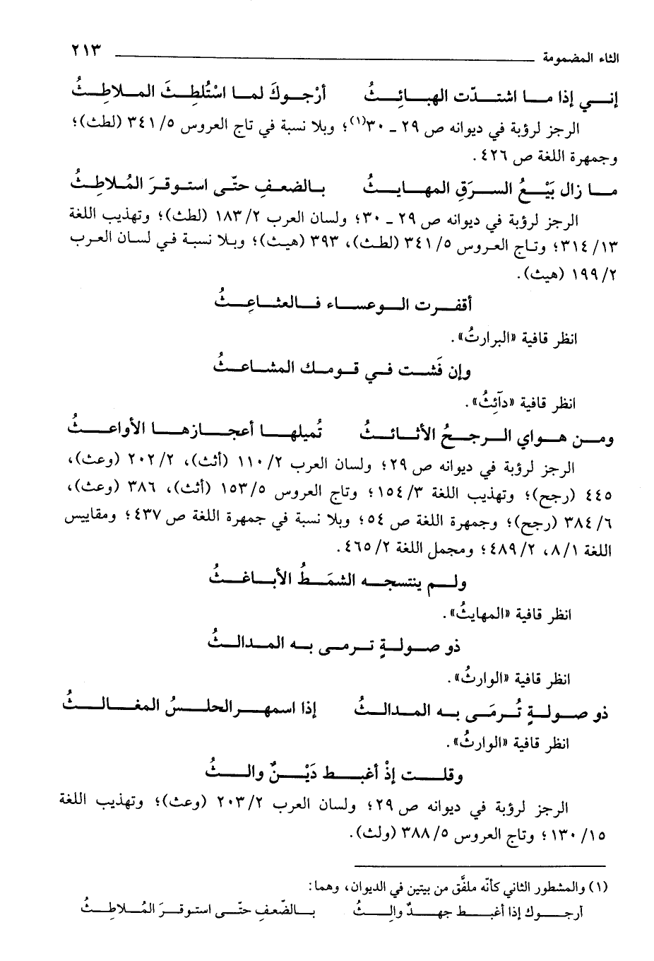 الرجز لرؤبة في ديوانه ص 29 - 30؛ ولسان العرب 2/ 183 (لطث)؛ وتهذيب اللغة 13/ 314؛ وتاج العروس 5/ 341 (لطث)، 393 (هيث)؛ وبلا نسبة في لسان العرب 2/ 199 (هيث).