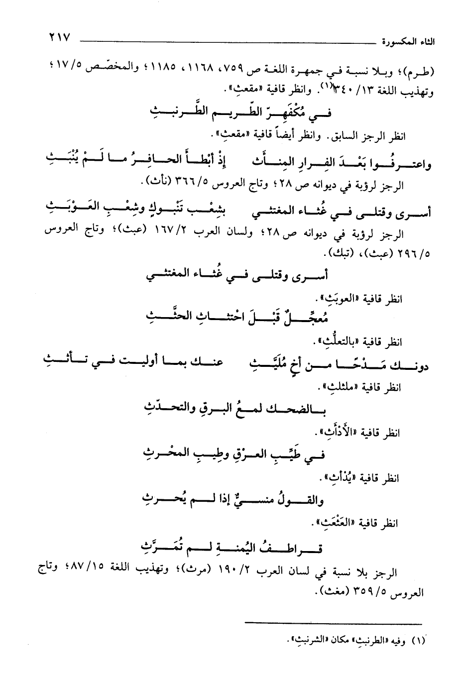 أنظر الرجز السابق. وأنظر أيضًا قافية «مقعثِ».