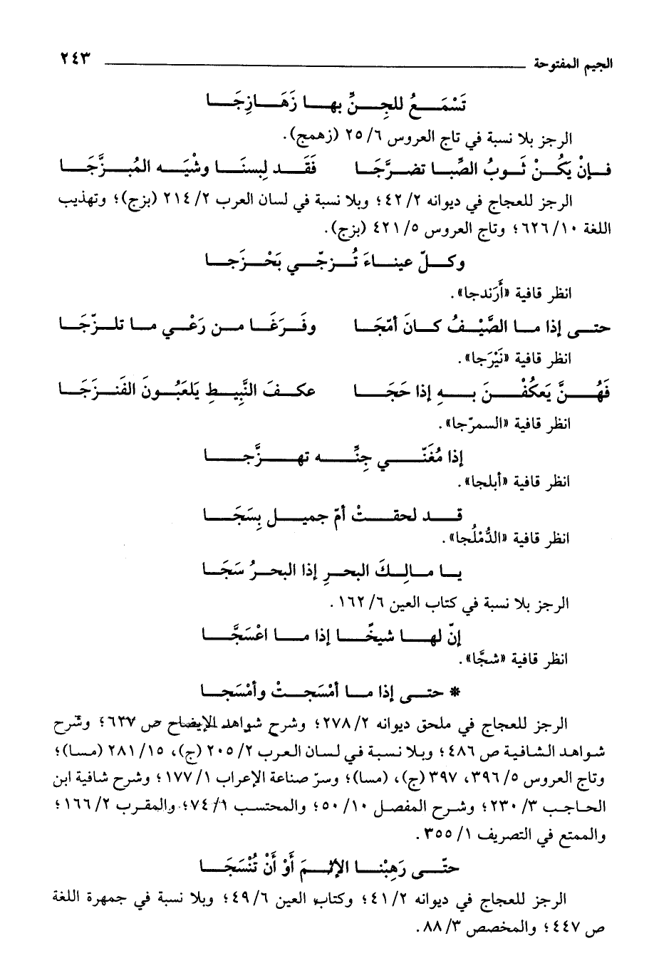الرجز للعجاج في ديوانه 2/ 41؛ وكتاب العين 6/ 49؛ وبلا نسبة في جمهرة اللغة ص 447؛ والمخصص 3/ 88.