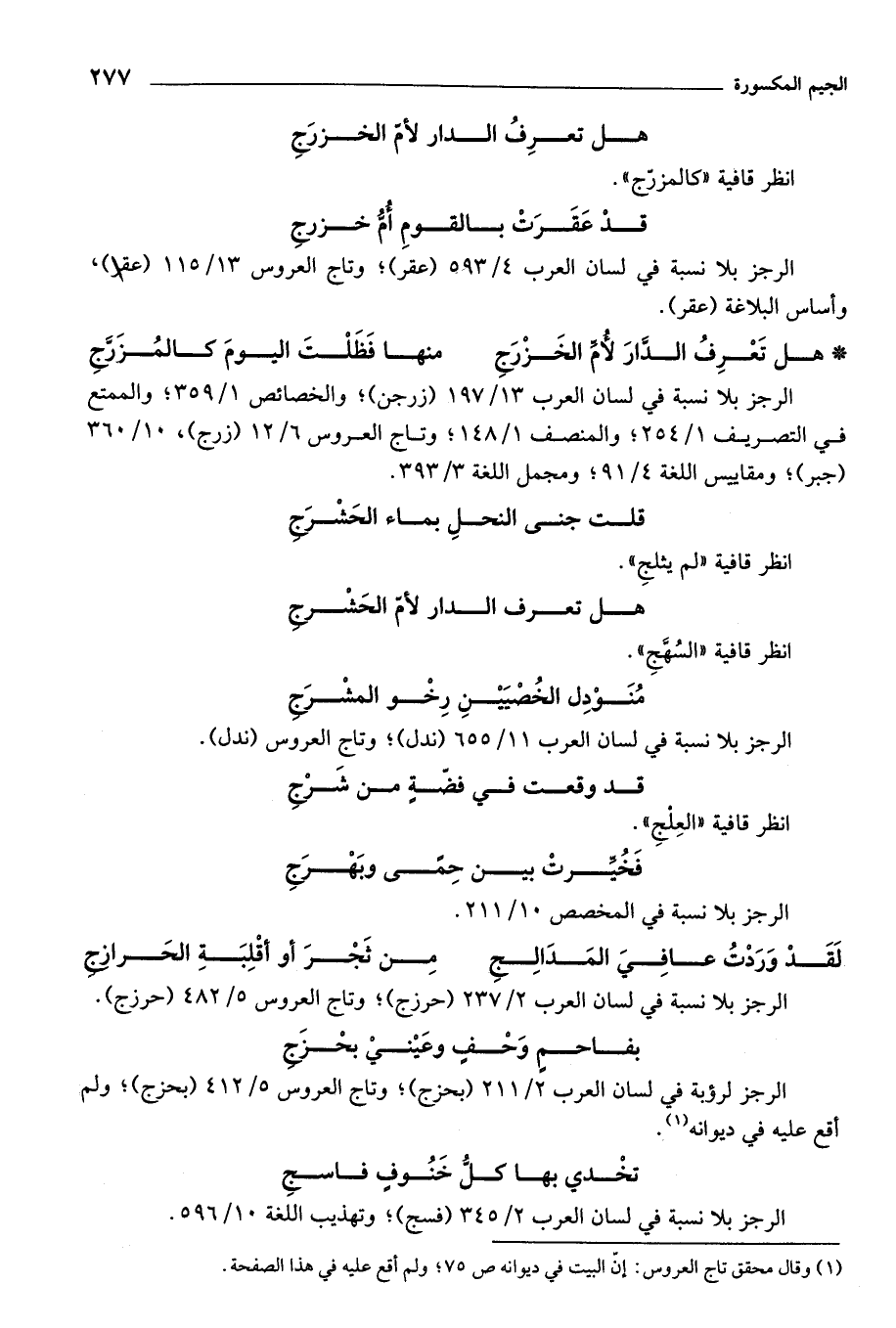 الرجز بلا نسبة في لسان العرب 2/ 211 (بحزج)؛ وتاج العروس 5/ 412 (بحزج)؛ ولم أقع عليه في ديوانه (¬1).