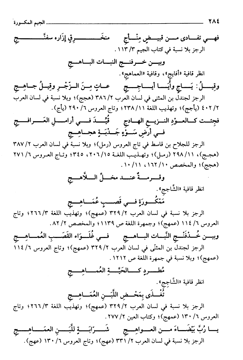 انظر قافية «أفايج»، وقافية «االعماهجِ».
