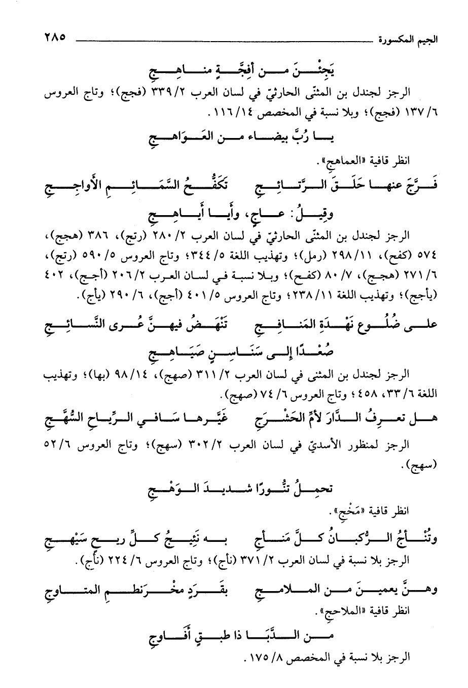الرجز لجندل بن المثنى الحارثي في لسان العرب 2/ 280 (رتج)، 386 (هجج)، 574 (كفح)، 11/ 298 (رمل)؛ وتهذيب اللغة 5/ 344؛ وتاج العروس 5/ 590 (رتج)، 6/ 271 (هجج)، 7/ 80 (كفح)؛ وبلا نسبة في لسان العرب 2/ 206 (أجج)، 402 (يأجج)؛ وتهذيب اللغة 11/ 238؛ وتاج العروس 5/ 401 (أجج)، 6/ 290 (يأج).