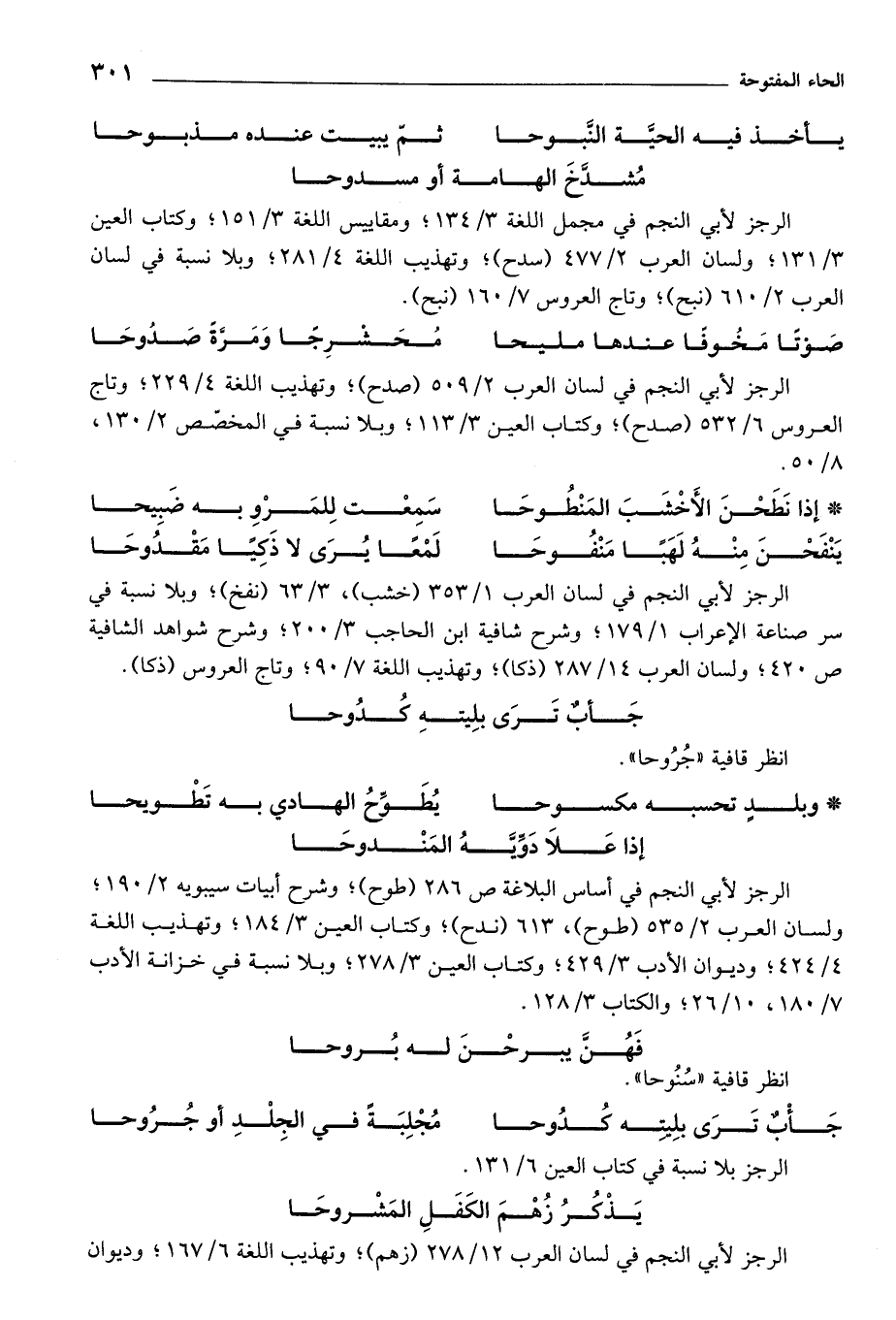 الرجز لأبي النجم في مجمل اللغة 3/ 134؛ ومقاييس اللغة 3/ 151؛ وكتاب العين 3/ 131؛ ولسان العرب 2/ 477 (سدح)؛ وتهذيب اللغة 4/ 281؛ وبلا نسبة في لسان العرب 2/ 610 (نبح)؛ وتاج العروس 7/ 160 (نبح).