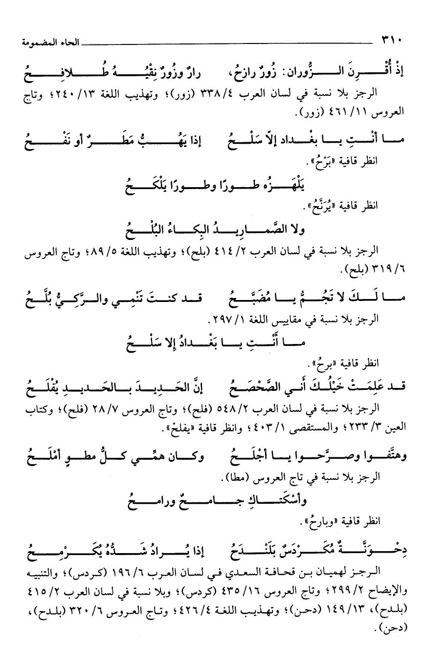 الرجز لهميان بن قحافة السعدي في لسان العرب 6/ 196 (كردس)؛ والتنبيه والإيضاح 2/ 299؛ وتاج العروس 16/ 435 (كردس)؛ وبلا نسبة في لسان العرب 2/ 415 (بلدح)، 13/ 149 (دحن)؛ وتهذيب اللغة 4/ 426؛ وتاج العروس 6/ 320 (بلدح)، (دحن).