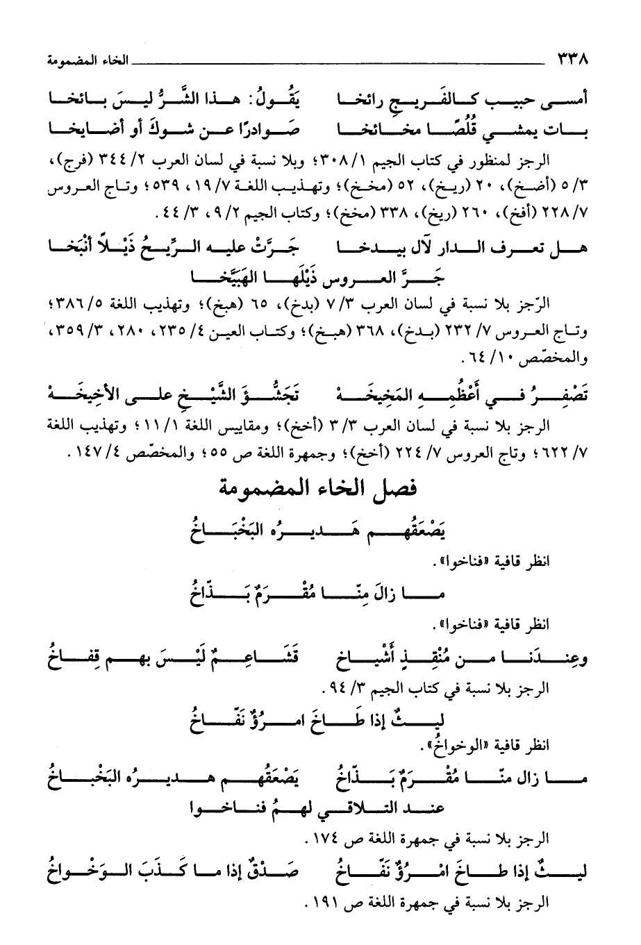 الرجز لمنظور في كتاب الجيم 1/ 308؛ وبلا نسبة في لسان العرب 2/ 344 (فرج)، 3/ 5 (أضخ)، 20 (ريخ)، 52 (مخخ)؛ وتهذيب اللغة 7/ 19، 539؛ وتاج العروس 7/ 228 (أفخ)، 260 (ريخ)، 338؛ وكتاب الجيم 2/ 9، 3/ 44.
