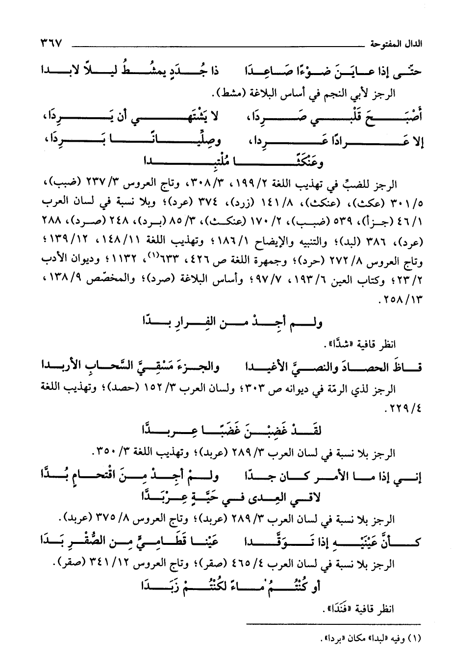 الرجز للضب في تهذيب اللغة 2/ 199، 3/ 308، وتاج العروس 3/ 237 (ضبب)، 5/ 301 (عكث)، (عنكث)، 8/ 141 (زرد)، 374 (عرد)؛ وبلا نسبة في لسان العرب 1/ 46 (جزأ)، 539 (ضبب)، 2/ 170 (عنكث)، 3/ 85 (برد)، 248 (صرد)، 288 (عرد)، 386 (لبد)؛ والتنبيه والإيضاح 1/ 186؛ وتهذيب اللغة 11/ 148، 12/ 139؛ وتاج العروس 8/ 272 (حرد)؛ وجمهرة اللغة ص 426، 633 (¬1)، 1132؛ وديوان الأدب 2/ 23؛ وكتاب العين 6/ 193، 7/ 97؛ وأساس البلاغة (صرد)؛ والمخصص 9/ 138، 13/ 258.