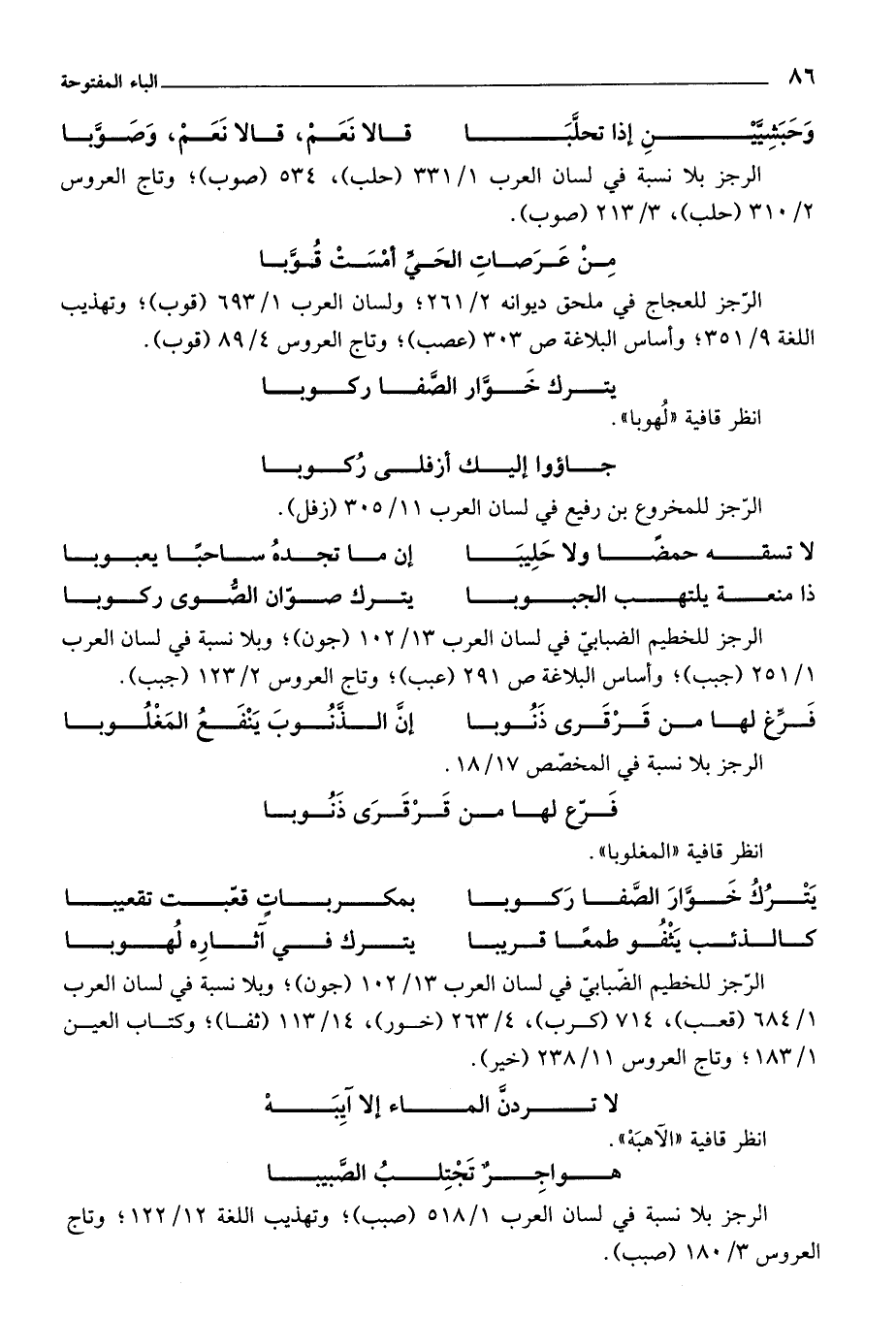 الرجز للعجاج في ملحق ديوانه 2/ 261؛ ولسان العرب 1/ 693 (قوب)؛ وتهذيب اللغة 9/ 351؛ وأساس البلاغة ص 303 (عصب)؛ وتاج العروس 4/ 89 (قوب).