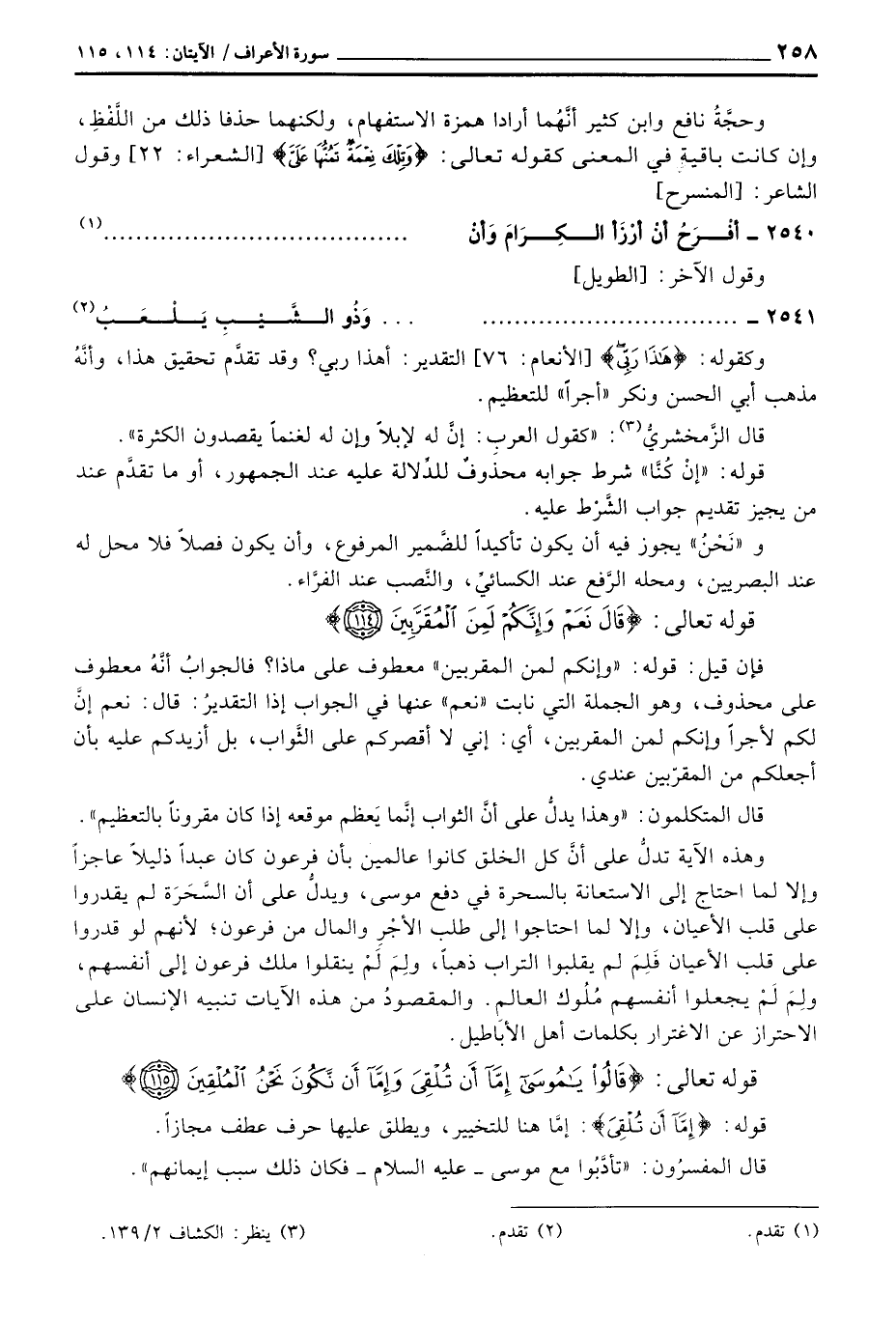 وهذه الآية تدلُّ على أنَّ كل الخلق كانوا عالمين بأن فرعون كان عبداً ذليلاً عاجزاً وإلا لما احتاج إلى الاستعانة بالسحرة في دفع موسى، ويدلُّ على أن السَّحَرَة ذليلاً عاجزاً وإلا لما احتاج إلى الاستعانة بالحسرة في دفع موسى، ويدلُّ على أن السَّحَرَة لم يقدروا على قلب الأعيان، وإلا لما احتاجوا إلى طلبِ الأجْرِ والمال من فرعون؛ لأنهم لو قدروا على قلب الأعيان فَلَمَ لم يقلبوا التراب ذهباً، ولِمَ لَمْ ينقلوا ملك فرعون إلى أنفسهم، ولِمَ لَمْ يجعلوا أنفسهم مُلُوك العالم. والمقصودُ من هذه الآيات تنبيه الإنسان على الاحتراز عن الاغترار بكلمات أهل الأبَاطيل.
