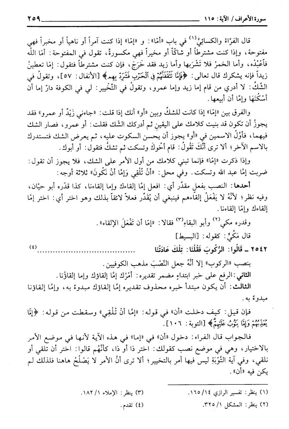 وإذا ذكرت «إمّا» فإنما تبني كلامك من أول الأمر على الشك، فلا يجوز أن تقول: ضربت إمَّا عبد الله وتسكت. وفي محل: {أَن تُلْقِيَ وَإِمَّآ أَن نَّكُونَ} ثلاثة أوجه: