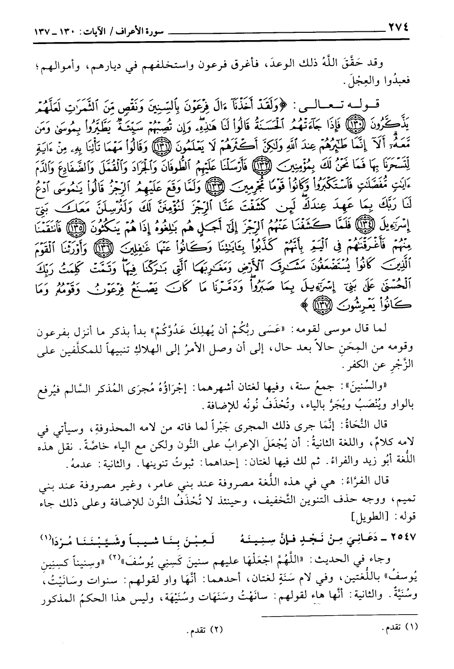 لما قال موسى لقومه: {عسى رَبُّكُمْ أَن يُهْلِكَ عَدُوَّكُمْ} [الأعراف: 29] بدأ بذكر ما أنزل بفرعون وقومه من المِحَنِ حالاً بعد حال، إلى أن وصل الأمرُ إلى الهلاكِ تنبيهاً للمكلَّفين على الزَّجْرِ عن الكفر.