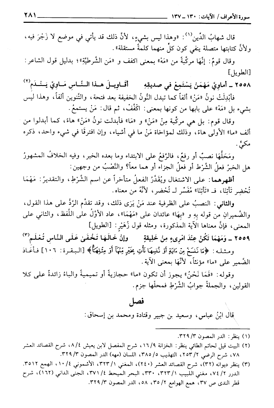 والثاني: النصبُ على الظرفية عند مَنْ يَرَى ذلك، وقد تقدَّم الرَّدُّ على هذا القول، والضَّميرانِ من قوله بِهِ و «بِهَا» عائدان على «مَهْمَا» ، عاد الأوَّلُ على اللَّفظ، والثاني المعنى، فإنَّ معناها الآية المذكورة، ومثله قول زُهَيْرٍ: [الطويل]