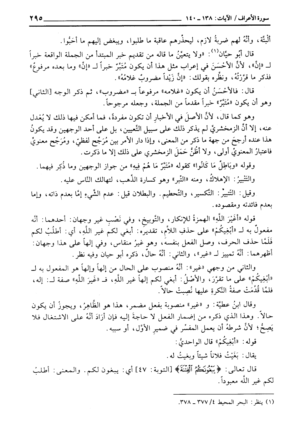 قال أبُو حيَّان: «ولا يتعيَّنُ ما قاله من تقديم خبر المبتدأ من الجملة الواقعة خبراً ل» إنَّ «، لأنَّ الأحْسَنَ في إعراب مثل هذا أن يكونُ مُتَبَّرٌ خبراً» إنَّ «وما بعده مرفوعٌ» فذكر ما قرَّرْتُهُ، ونظَّره بقولك: «إنَّ زَيْداً مضروبٌ غلامُهُ» .