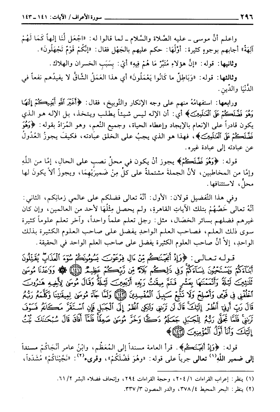 وفي هذا التَّفضيل قولان: الأول: أنَّهُ تعالى فضلكم على علامي زمانِكم، الثاني: أنَّهُ تعالى خَصَّهمْ بتلك الآياتِ القاهرةِ، ولم يحصل مِثْلُهَا لأحد من العالمين، وإن كان غيرهم فضلهم بسائر الخصَال، مثل: رجل تعلم علماً واحداً، وآخر تعلم علوماً كثيرة سوى ذلك العلم، فصاحب العلم الواحدِ يفضل على صاحب العلوم الكثيرة بذلك الواحدِ، إلاَّ أنَّ صاحب العلوم الكثيرة يفضل على صاحب العلم الواحد في الحقيقة.