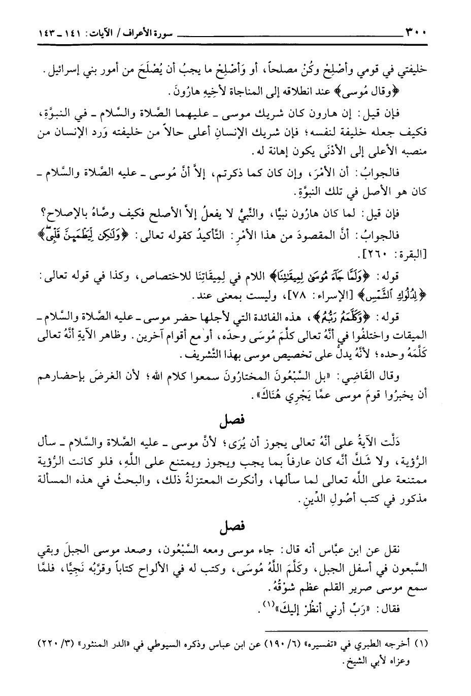 وقال القَاضِي: «بل السَّبْعُونَ المختارُونَ سمعوا كلام الله؛ لأن الغرضَ بإحضارهم أن يخبرُوا قومَ موسى عمَّا يَجْرِي هَنَاكَ» .