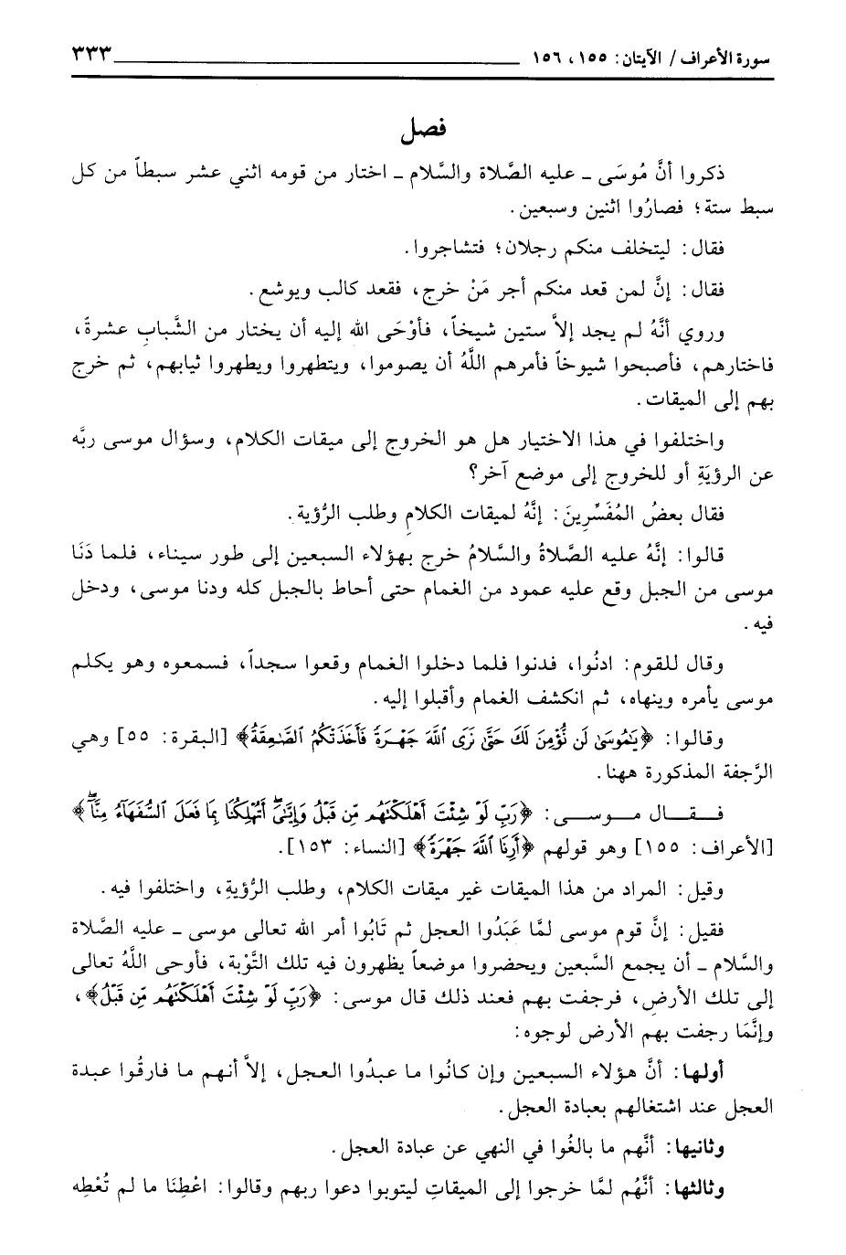 واختلفوا في هذا الاختيار هل هو الخروج إلى ميقات الكلام، وسؤال موسى ربَّه عن الرؤيّةِ أو للخروج إلى موضع آخر؟