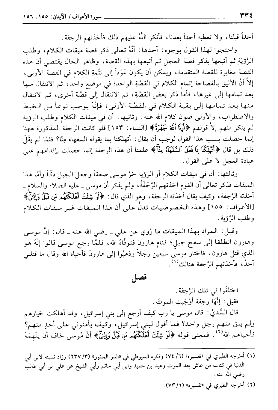 واحتجوا لهذا القول بوجوه: أحدها: أنَّهُ تعالى ذكر قصة ميقات الكلام، وطلب الرُّؤيَةِ ثم أتبعها بذكر قصة العجل ثم أتبعها بهذه القصة، وظاهر الحال يقتضي أن هذه القصة مغايرة للقصة المتقدمة، ويمكن أن يكون عَوْداً إلى تتَّمةِ الكلام في القصة الأولى، إلاَّ أنَّ الأليق بالفصاح إتمام الكلام في القصَّةِ الواحدة في موضع واحد، ثم الانتقال منها بعد تمامها إلى غيرها، فأما ذكر بعض القصَّةِ، ثم الانتقال إلى قصَّة أخرى، ثم الانتقال منها بعد تمامها إلى بقية الكلام في القصَّة الأولى؛ فإنَّه يوجب نوعاً من الخبط والاضطراب، والأولى صون كلام الله عنه.