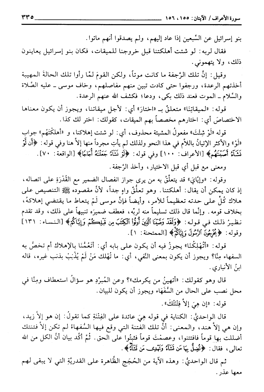 فقال لربه: لو شئت أهلكتنا قبل خروجنا للميقات، فكان بنو إسرائيل يعاينون ذلك، ولا يتهموني.