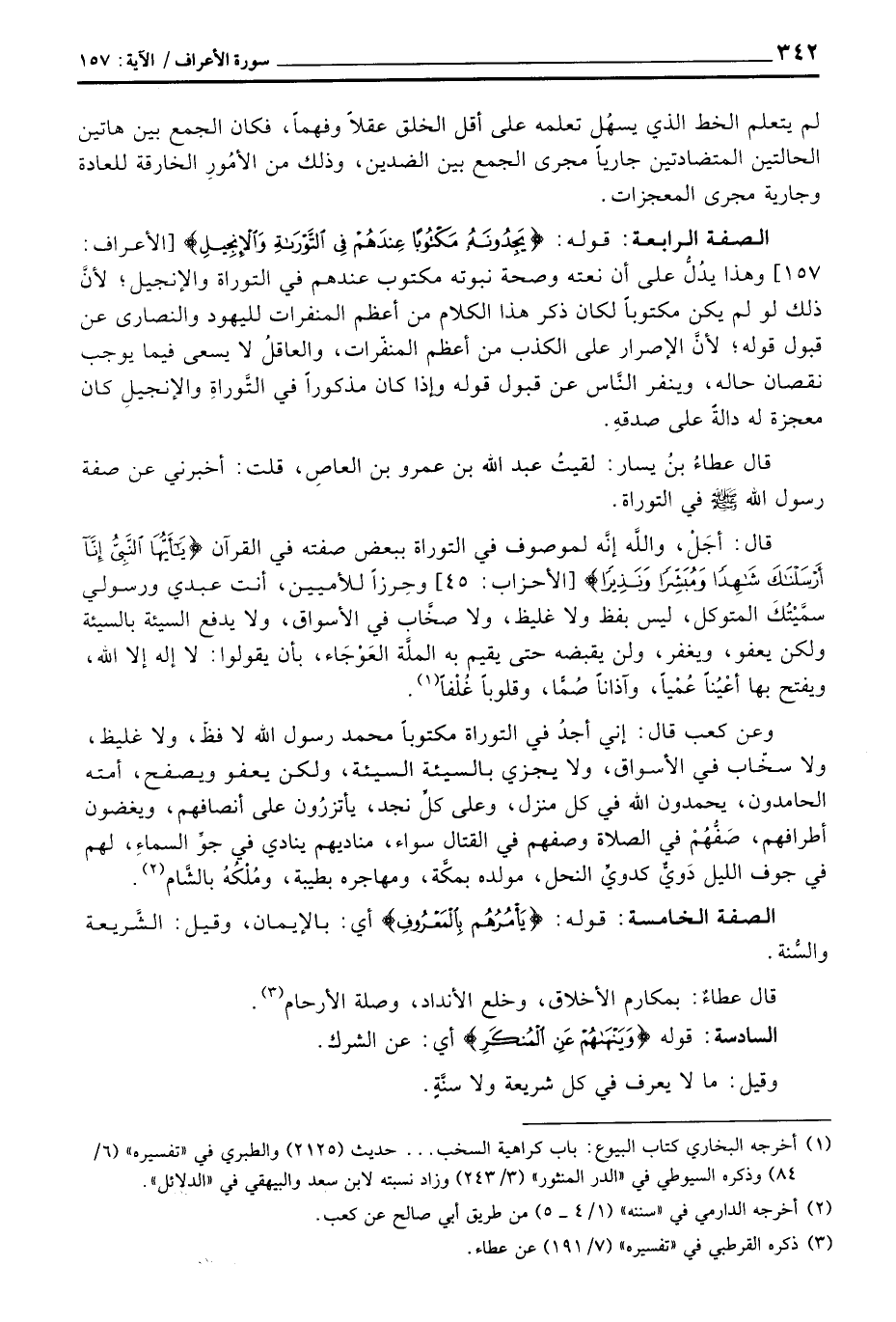 قال عطاءُ بنُ يسار: لقيتُ عبد الله بن عمرو بن العاصِ، قلت: أخبرني عن صفة رسول الله صَلَّى اللَّهُ عَلَيْهِ وَسَلَّم َ في التوراة.