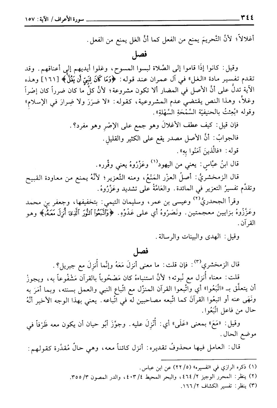 وقرأ الجحدريُّ وعيسى بن عمر، وسليمان التيمي: بتخفيفها، وجعفر بن محمد وعَزَّرُوهُ بزايين معجمتين. ونَصَرُوهُ أي على عَدُوِّهِ. {واتبعوا النور الذي أُنزِلَ مَعَهُ} وهو القرآن.