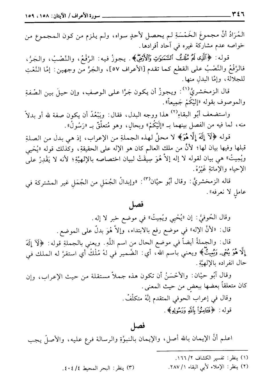واستضعف أبُو البقاءِ هذا ووجه البدل، فقال: ويَبْعُدُ أن يكون صفة لله او بدلاً منه، لما فيه من الفصل بينهما ب «إلَيْكُمْ» وبحالٍ، وهو مُتعلِّقٌ ب «رَسُولُ» .