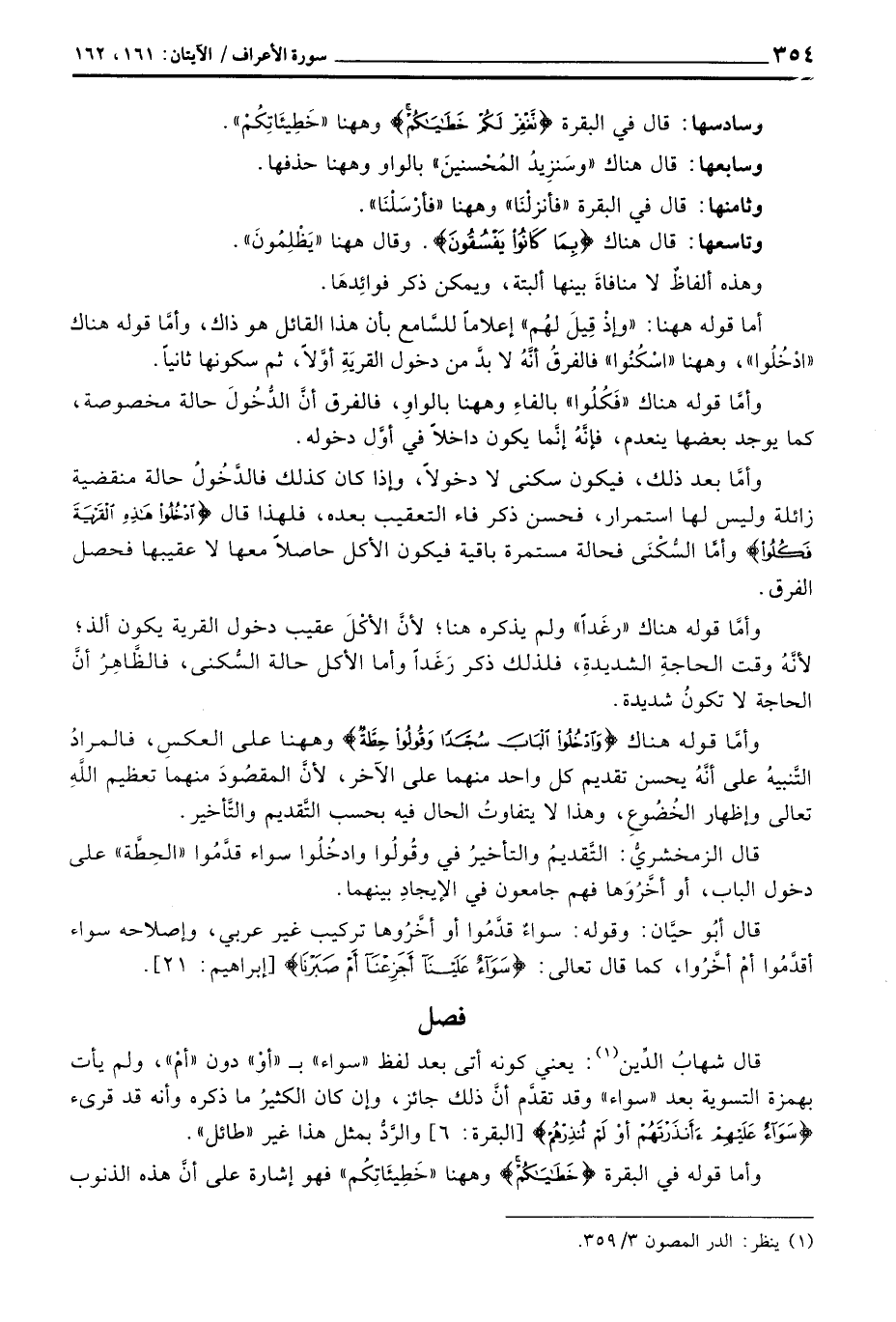 فصل قال شهابُ الدِّين: يعني كونه أتى بعد لفظ «سواء» ب «أوْ» دون «أمْ» ، ولم يأتي بهمزة التسوية بعد «سواء» وقد تقدَّم أنَّ ذلك جائز، وإن كان الكثيرُ ما ذكره وأنه قد قرىء