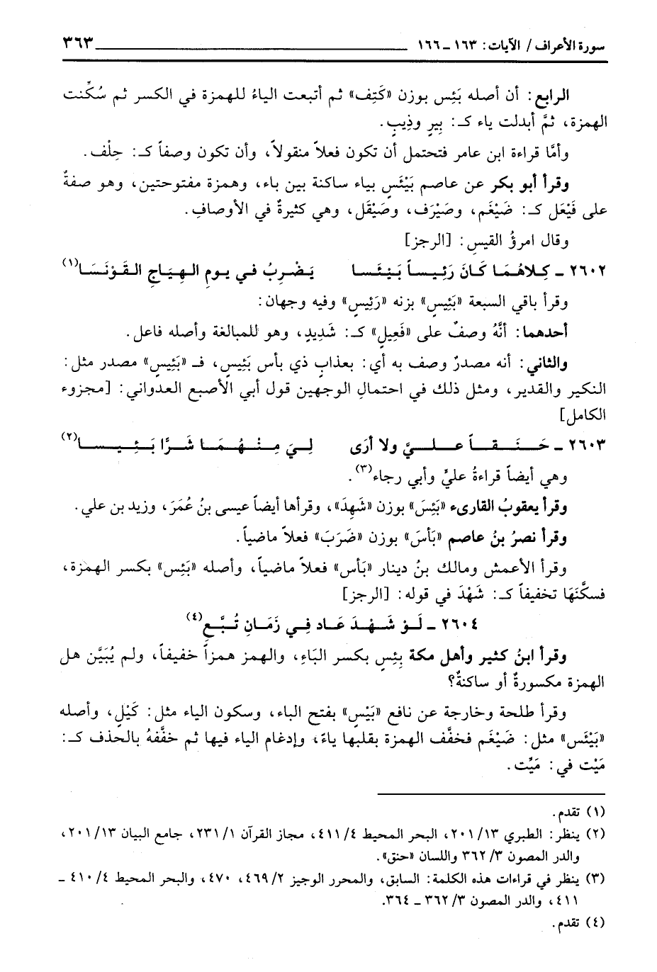 2604 - لَوْ شَهْدَ عَاد فِيَ زَمَانِ تُبَّعِ ... وقرأ ابنُ كثير وأهل مكة بِئِسٍ بكسر البَاءِ، والهمز همزاً خفيفاً، ولم يُبَيِّن هل الهمزة مكسورةٌ أو ساكنةٌ؟