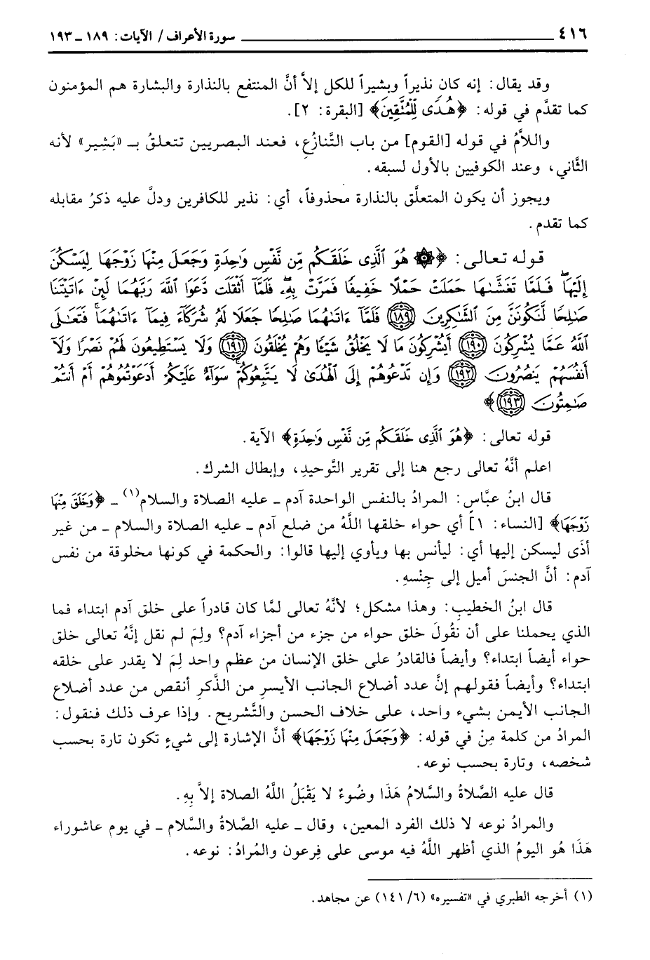 قوله تعالى: {هُوَ الذي خَلَقَكُمْ مِّن نَّفْسٍ وَاحِدَةٍ} الآية.